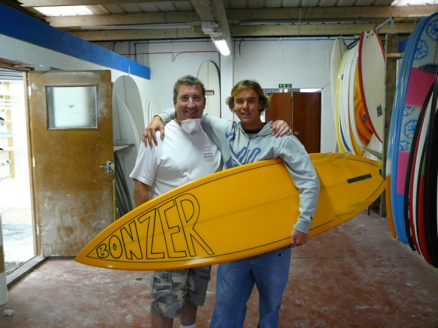 Well my Sammy took the plunge and graduated from one of the flock to the Shepherd... he ordered his 6'4" high performance Bonzer from Nigel Semmens Custom Surfboards - Ocean Magic Surfboard Factory, Newquay Cornwall this week... just in time for 7 months in Indonesia!